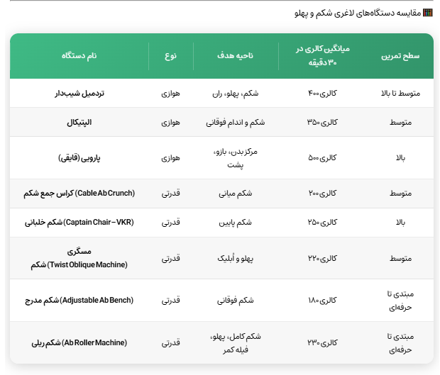 1. فرآیند لاغری شکم و پهلو یک دوئل بین مصرف انرژی (دستگاه‌های هوازی و قدرتی) و کنترل ورودی انرژی (تغذیه) است.